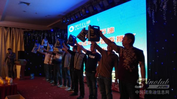 现代石油技术总工程师余总、现代石油营销总监张总和区域经理游经理也到会予以支持。余总向与会客户介绍了现代石油近几年高速发展的情况,指出:虽然现代石油偏居西南一隅,但凭借过硬的产品质量和创新的“九大服务体系”,其自主品牌在全国发展的势头迅猛,2015年荣获“LUBTOP中国润滑油行业年度十强”殊荣。为进一步提升广大车主的油品良好体验度,现代石油技术部又于今年年初对产品的配方进行了升级调整,比如新推出的一款出租车专用油SL 10W/40可适用于1.2-1.5万公里换油。