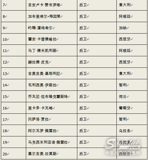 2010 FIFA世界杯小组赛第二轮战罢后,在迄今为止的比赛中,嘉实多指数评选出如下表现优异的20强球员: