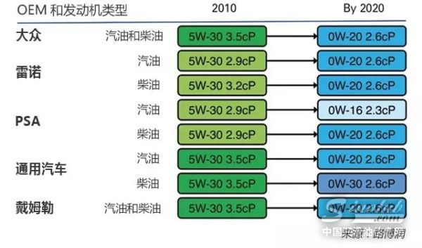 ▲ 图2:OEM逐渐转向低高温高剪(HTHS)粘度0W-XX级润滑油