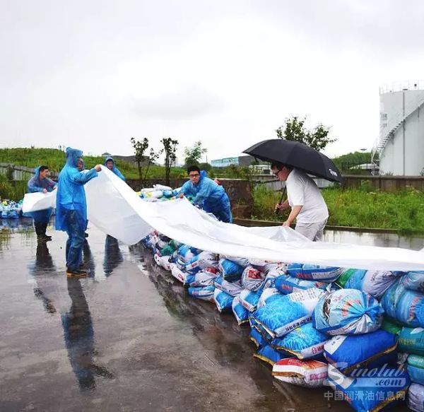 2016年6月28日中午12时左右,溧阳地区连续强降雨使芜申运河水位由早上8点的4.5米急速上升至5.5米,水面距离公司码头驳岸距离不到0.5米。发现这一情况,司能石化常务副总经理吴土金立即组织和号召江苏司能防汛抗洪小组第一时间紧急启动一系列防汛抗洪应急措施:
