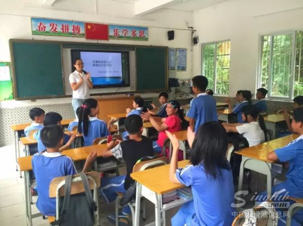 下午14点,道达尔润滑油的爱心团队为同学们上了一堂别开生面的公开课。其中,道达尔润滑油(中国)有限公司副总经理朱汉强亲自为五年级(2)班的同学们主讲了五大洋七大洲地理知识和欧洲法国文化。而在其他的班级里,道达尔润滑油爱心团队分别为同学们主讲了能源小知识和道理安全出行小贴士。