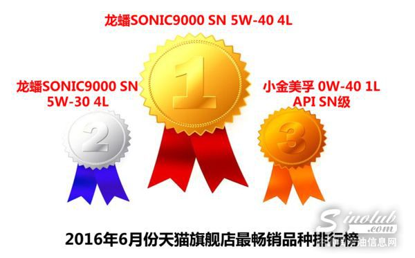 在机油猫公布的天猫旗舰店畅销产品数据中,2016年6月中国润滑油电商界的“黑马”龙蟠旗下的“龙蟠SONIC9000 全合成机油汽车发动机润滑油 SN 5W-40 4L”成交量为10552件,夺得“最畅销产品”称号,登上冠军宝座。排名第二的是“龙蟠SONIC9000 SN 5W-30 4L”,成交量为4153件。排名第三的是“Mobil 美孚一号 小金美孚 润滑油 0W-40 1L API SN级全合成机油”,成交量为2862件。作为润滑油领域后起之秀的龙蟠润滑油,本月继续将冠亚军收入囊中,表现十分亮眼。作为润滑油行业民族品牌,龙蟠润滑油赢得了车主消费者的高度信赖,其电商成功之路值得其他中国润滑油品牌借鉴学习。