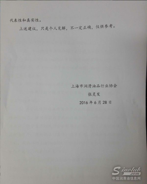 上海市润滑油品行业协会副会长兼秘书长张灵发导师回函