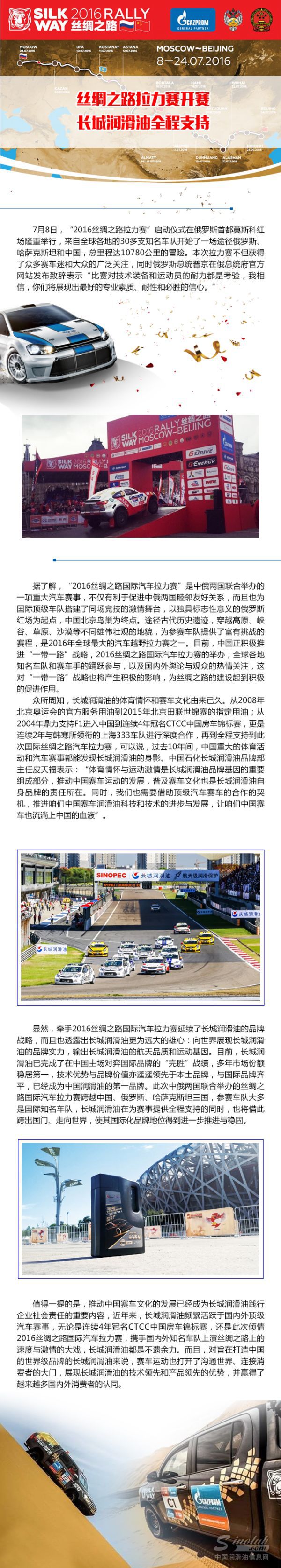 当地时间7月8日,“中-俄2016年丝绸之路拉力赛”在莫斯科红场正式发车,本次赛程将穿越3个国家,经历15个赛段比拼,总里程全程10734.89公里。同时本次拉力赛将首次进入中国,来自中国的23位车手将与国际车友一决高下,这或许将是有史以来最激情的越野拉力赛事!长城润滑油不仅将全程提供赛事支持,而且会同步进行赛况播报!