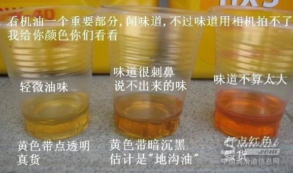 假机油颜色比较深深,同时会有杂质沉淀物,而真机油颜色光亮,同时没有杂质。