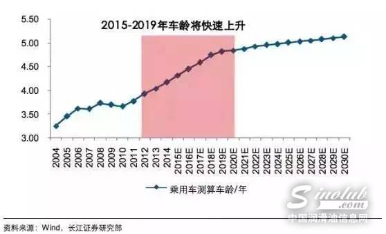 2014年平均车龄为4.17年,并处于快速上升通道,假设我国汽车平均使用10年后报废,2019年平均车龄将增长至4.82年。