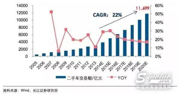 二手车销量处于快速增长周期,预计2020年二手车销量超过2100万辆,总规模1.2万亿。