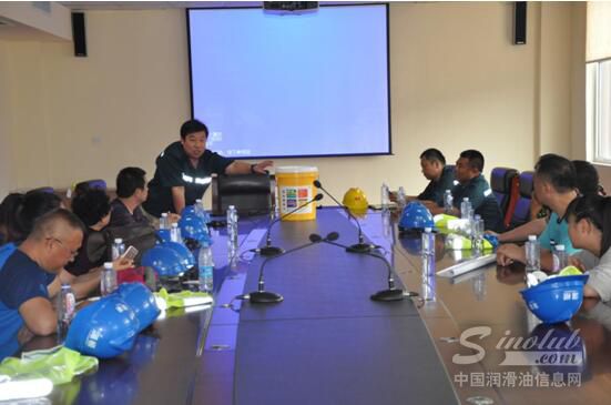小松油品销售公司总经理张斌与客人进行技术交流与营销服务
