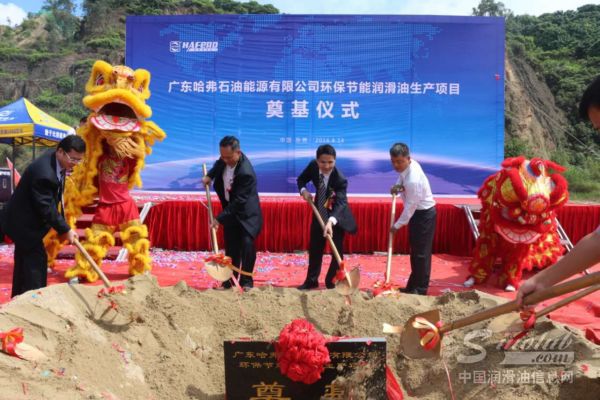 8月14日,珠三角最大的自动化润滑油生产基地在广东奠基。基地位于广东东莞大岭山镇连平畔山工业园,由广东哈弗石油能源有限公司投资建设,占地面积47亩,投资达2亿元,基础油的储备能力达到10000立方规模,生产产品涉及润滑油、润滑脂及防冻液,年产润滑油将达到10万吨,可创造社会产值10-15亿元。