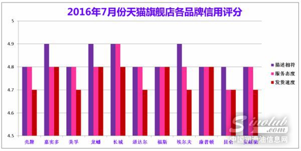 2016年7月份畅销机油天猫旗舰店的信用评分与各月份大体保持不变,总体承接上月升势,评分持续好转。从打分和评价上可以看出,消费者对于官方旗舰店有很高的信任度,相信产品的品质,并且对咨询、购买及售后的整个流程基本满意。从消费者评价来看,大多期望加快发货速度,加大产品促销力度,丰富完善现有的线上服务,提高服务质量。