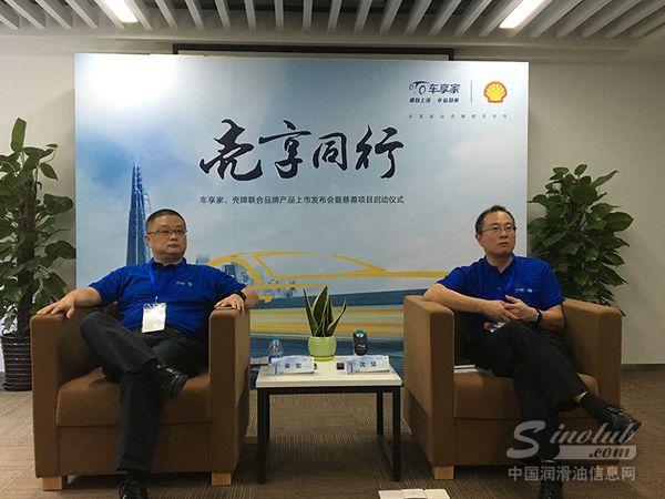车享家执行董事吴宏先生(左)和壳牌润滑油业务中国大陆与香港地区总经理沈坚先生(右)接受媒体采访