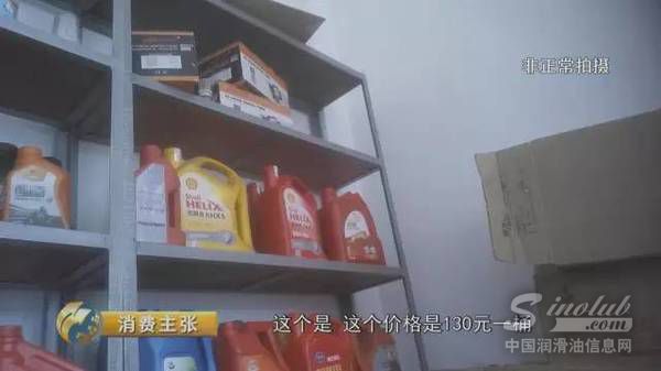 记者指着一桶黄色的壳牌润滑油询问真假——