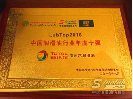 道达尔润滑油荣膺“2016中国润滑油行业年度十强”