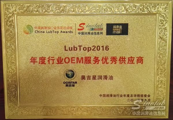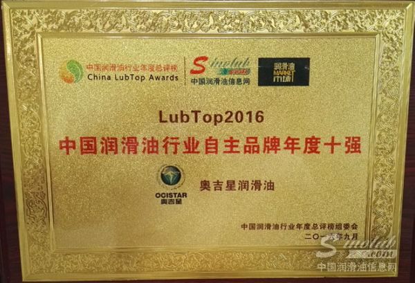 本次奥吉星润滑油成功入选“LubTop2016中国润滑油行业自主品牌年度十强”和“LubTop2016年度行业OEM服务优秀供应商”,对全体天泰人既是一份激励,也是一份鞭策。“中国润滑油自主品牌十强”和“行业OEM服务优秀供应商”两项殊荣,也将成为奥吉星润滑油做大做强的两枚重要标签,为奥吉星参与国内外市场竞争提供了两张金色的名片。荣誉既是对过去成就的肯定,也是一份沉甸甸的责任,更是对未来发展的鞭策。
