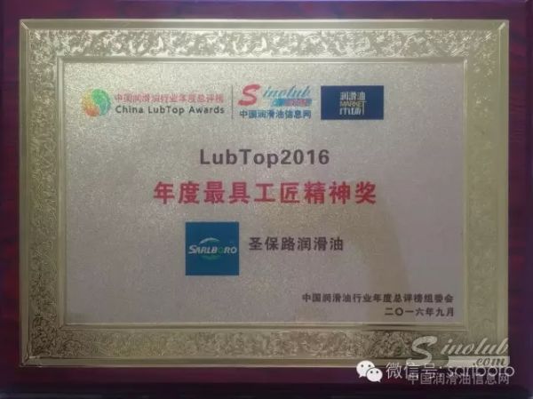 经过激烈的网络投票、专业的市场调研以及专家导师委员会的严格评审等重重筛选,圣保路润滑油最终荣膺品质奖最高殊荣——“LubTop2016年度最具工匠精神奖”。