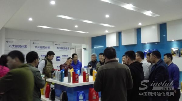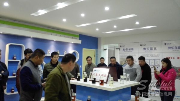 客户参观现代石油样桶展示区。摩机油市场竞争日益激烈,而且随着消费者对产品外观的重视程度不断提升,客户们对现代石油的摩机油桶形和产品结构提出了建议。