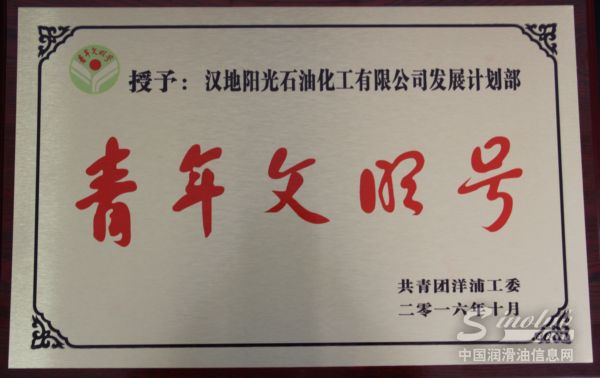 11月11日,在共青团洋浦工委主办的2015-2016年度洋浦经济开发区青年文明号、青年岗位能手评选表彰大会上,海南汉地阳光石油化工有限公司发展计划部荣获“青年文明称号”。