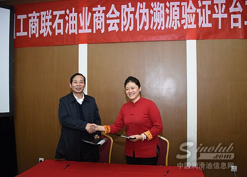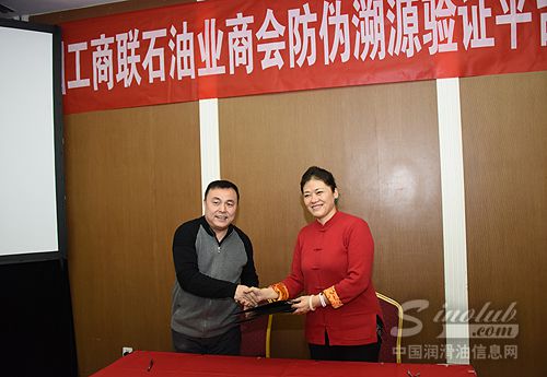 在签约仪式上,润滑油分会会长单位江苏龙蟠科技股份有限公司、副会长单位山东源根石油化工有限公司,加油加气设备分会理事单位沈阳新飞宇橡胶制品有限公司、河北安平县长安石化设备有限公司签署了验证平台入网意向书,成为首批验证平台入网用户。