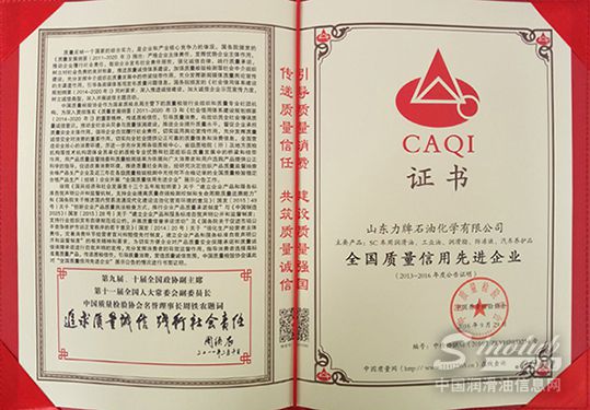 优质的产品和服务是企业生存和发展根本,诚信经营更是企业最重要的管理理念。这两项荣誉的取得,不仅充分肯定了力牌润滑油过硬的产品质量,也进一步体现了国家和公众对品牌信誉的充分认可。未来,力牌润滑油将继续始终如一的为国人提供放心、高品质的润滑油,助力中国润滑油行业的发展。