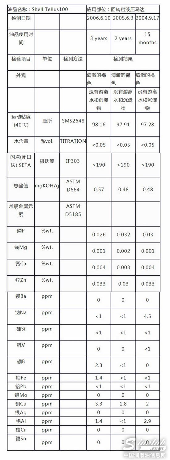 在对某厂回转窑驱动液压马达(如图二所示)所使用的液压油进行持续3年的油品质量追踪监测之后,经过严格的检测分析和数据对比,壳牌油品的各项常规理化检测数据指标仍旧在可以继续使用的范围之内,并且各项金属磨损含量非常低,说明液压系统零部件工作正常无异常磨损。按照该厂正常维护保养程序,液压油的更换周期为1年,通过合理润滑技术的应用,该油品寿命延长到了3年,不仅节省了油品本身的更换费用,还大大降低了因停机维护检修所带来的生产运营成本,从而极大提高了用户的设备使用效率和生产经营效益。具体油品监测结果如表二所示。