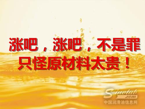 业界人士认为,涨价意味着成本升高,虽无法避免,但其产生的竞争与生存压力也对市场、行业有着积极的调节作用。基础油、添加剂、税费、运输成本、包装成本等价格的不断上涨,势必将淘汰一批无力应对高价成本的小厂家,同时也在倒逼国内润滑油厂家向国际品牌和高端市场靠拢。