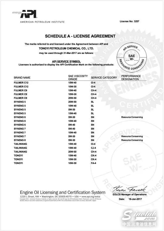 近日,统一润滑油旗下柴机油发动机油,同时通过了——被誉为柴机油领域全球最高标准——APICK-4和API FA-4的严格检测,成功获得了API (美国石油协会)授予的技术认证证书。这是统一继2017开年以来获得博世力士乐液压油与德国MAN(曼)船用油认证后,再次获得世界级的领先认可。