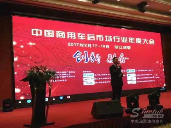2月18日,由龙蟠润滑油赞助支持的2016中国商用车后市场年度大会暨2016商用车后市场总评选颁奖庆典在浙江诸暨盛大举行,龙蟠董事长石俊峰、可兰素总经理秦建等领导应邀出席会议。会上,龙蟠润滑油被授予“2016中国商用车后市场最具影响力品牌” 荣誉称号。