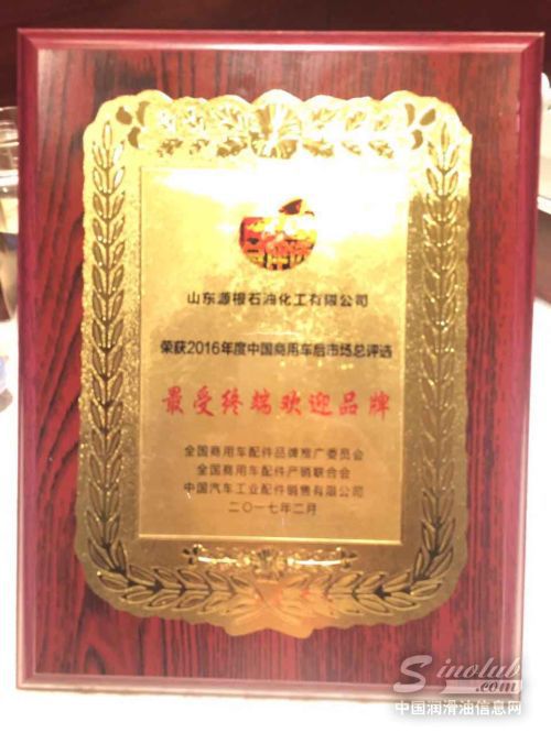 2017年2月18日,源根石化出席在越国故地、西施故里——浙江诸暨举行的“2016中国商用车后市场年度大会暨2016中国商用车后市场总评选颁奖盛典”并荣获中国商用车后市场“最受终端欢迎品牌 ”荣誉。