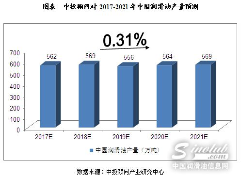 中投顾问对2017-2021年中国润滑油表观消费量预测