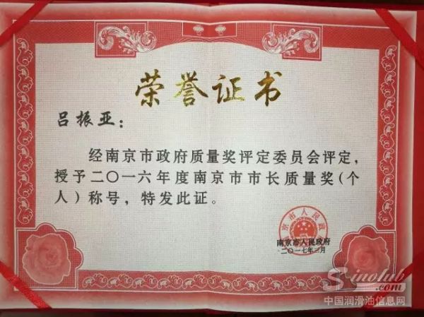3月9日上午,南京市政府召开全市质量强市工作会议,江苏省质监局副局长张前,南京市副市长孙建友,南京市质监局局长孙宁等相关领导出席会议。会议总结了2016年全市质量强市工作,并对获得2016年度南京市市长质量奖及提名奖的企业和个人、南京名牌产品企业、质量强市工作优秀区进行了表彰。经市政府质量奖评定委员会评定,龙蟠科技常务副总经理吕振亚荣获2016年度南京市市长质量奖(个人)。