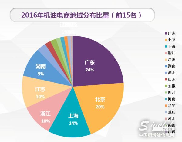 从2016年开始,机油电商成交量地域分布呈现出多元化特色,不再是以往广东一省手握半壁江山,“北上广”三省市占据八成市场的格局。机油猫数据显示,2016年,沿海发达地区继续引领机油电商前行,但分布更趋多样化,江浙两省的分量迅速扩大。此外,湖南省在2016年下半年凭借巨大的摩托车机油成交量快速崛起,成功地在2016机油电商排行榜中占有一席之地,凸显中部地区在机油电商行业中所具有的潜力。