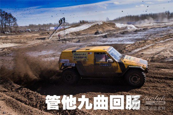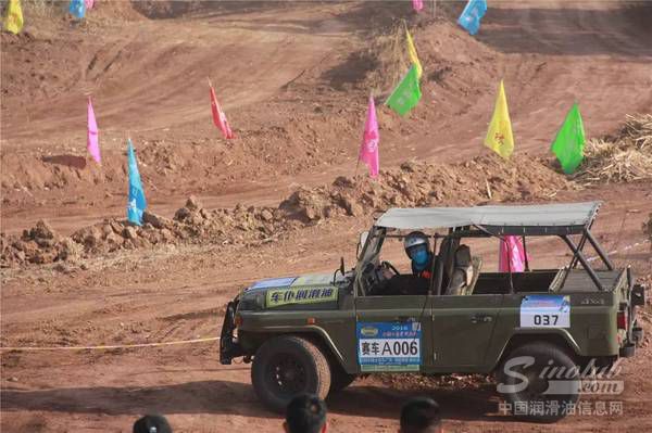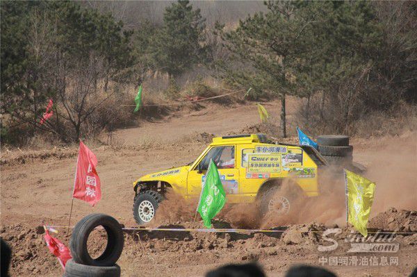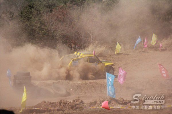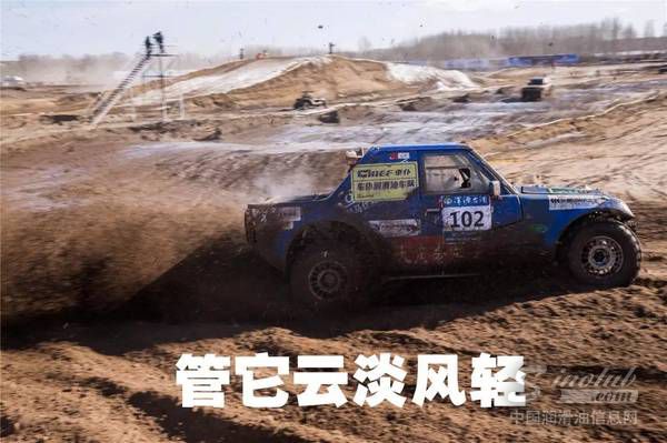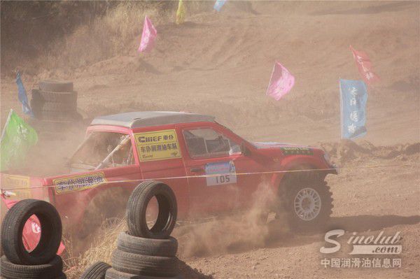 障碍一个接一个,而霸气的车仆润滑油车队6号车手刘鑫爬山坡、过弯道,突破重重险阻,飞驰越过,一时间赛场内沙尘飞扬、泥土四溅,场面惊心动魄、扣人心弦,最后以绝对的优势夺取了小排量组的冠军。