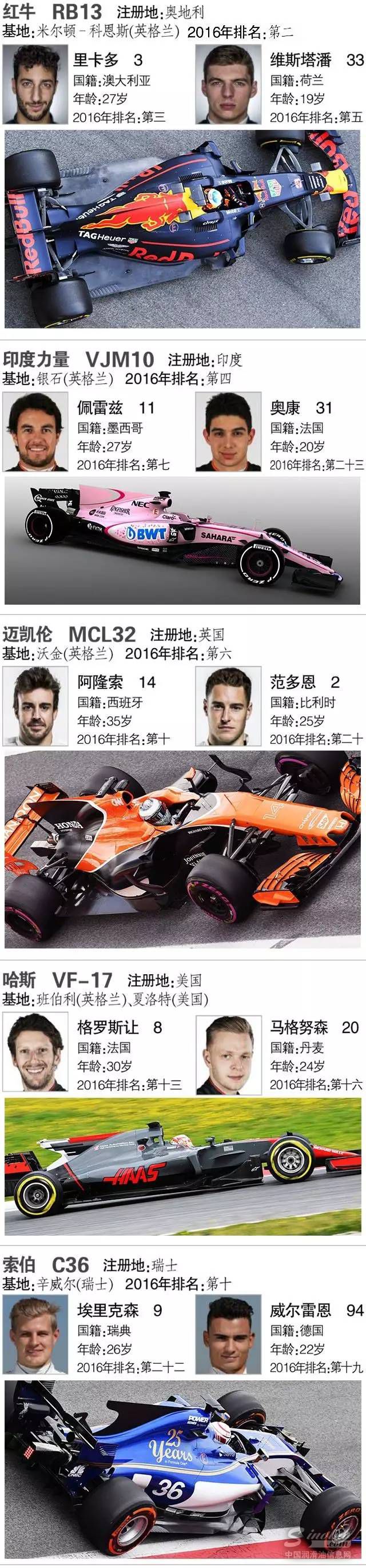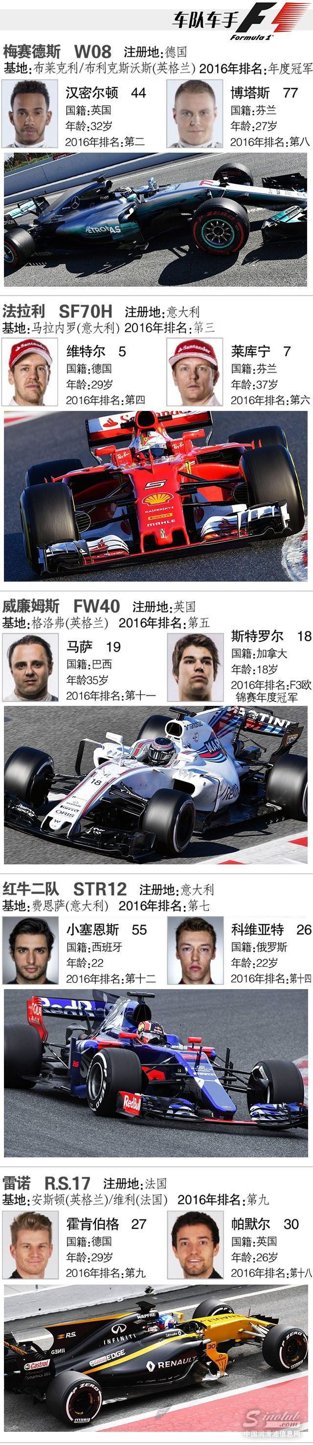 罗斯伯格终于在2016年赢得了个人第一个F1车手世界冠军头衔,但是仅仅一星期后他突然宣布退役,震惊了所有人。这是1994年以来,第一次新赛季开始时没有卫冕冠军。梅赛德斯为了捍卫车队“三连霸”的荣誉,从威廉姆斯挖来博塔斯与汉密尔顿组成新的搭档,这也促成了原本已经决定退役的马萨在威廉姆斯再战一年。博塔斯能否成为合格的搣罗斯伯格替身攠无疑是今年最大的看点之一,尤其是他与汉密尔顿是否将擦出激烈的火花。