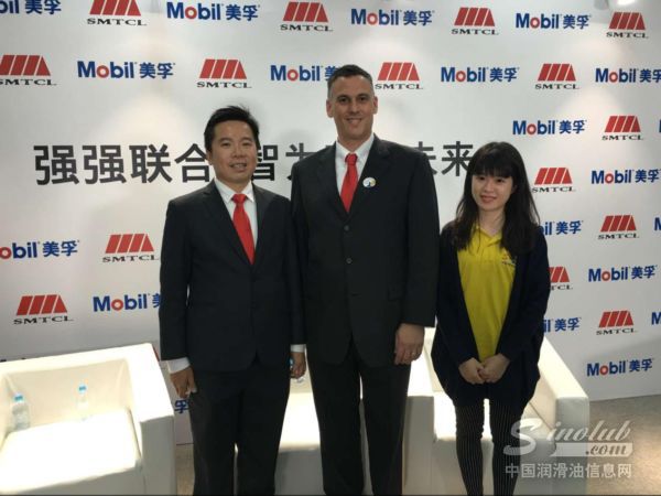 埃克森美孚成品油及润滑油营销公司亚太区工业润滑油市场部经理Glen Sharkowicz(中)、埃克森美孚(中国)投资有限公司副总经理黄卫防(左)与中国润滑油信息网编辑亲切合影