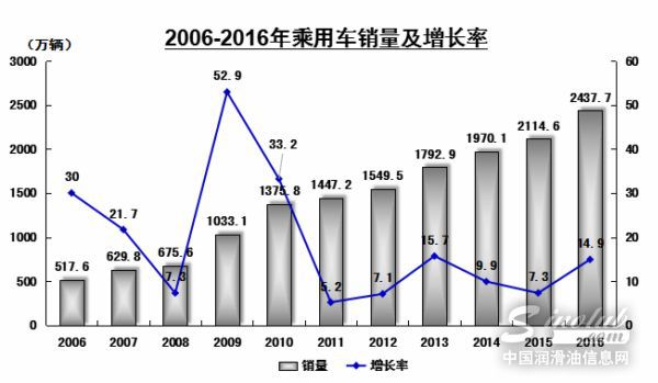 具体到汽车行业,节节攀升的销量为业内创新发展的赢得了足够的空间。统计显示,2016年中国乘用车销量超过2400万辆,比上年增长约15%,以超过一千万辆的差距远远领先传统的汽车消费大国美国。一个不断壮大的中产阶级,快速城市化的西部区域,加上长期由政府主导的刺激政策,都有助于汽车保有量的提升。尤其是自身财富不断积聚的中产阶级,数次打破来自政府、厂家、咨询机构乃至市场一线经销商“低增长”、“增长停顿”的预言,自2006年以来不断推动汽车销量的攀升。显然,一个交易活跃的汽车市场,对润滑油市场而言具有积极的直接影响。为迎合这一趋势,中国车用润滑油市场将致力于生产高燃油经济性、排放标准更严格的产品。