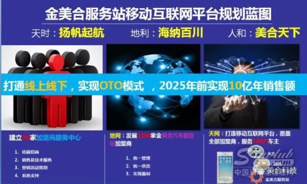 未来,金美合汽车服务站的目标是通过O2O模式,在全国发展1500家金美合汽车服务站加盟商,服务100万车主,在8年内达到10亿年销售额的目标。
