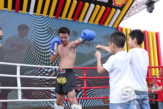 赛道上激情四射,互动区也热血满满。延长壳牌此次邀请到国际知名拳手在现场进行“Power King”拳击SHOW。同时,还可以让观众与拳手零距离过招,拳手们也会在现场教授一些防身术与散打的技巧。记者看到,不少消费者身着专业拳击护具,与拳手进行面对面的攻防演练,体验着延长壳牌带来的力量与活力。