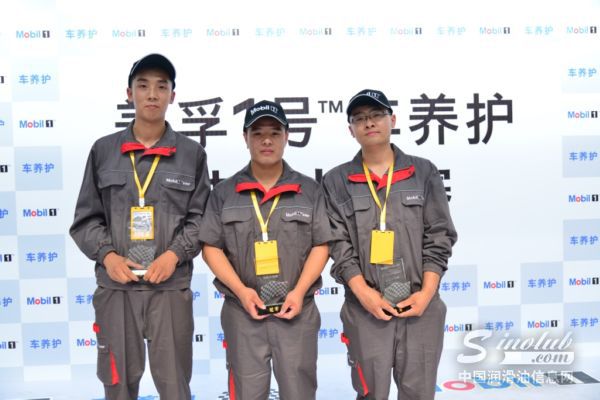 2017年美孚1号车养护技能大师赛前三名技师合影
