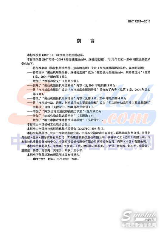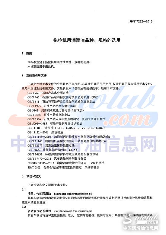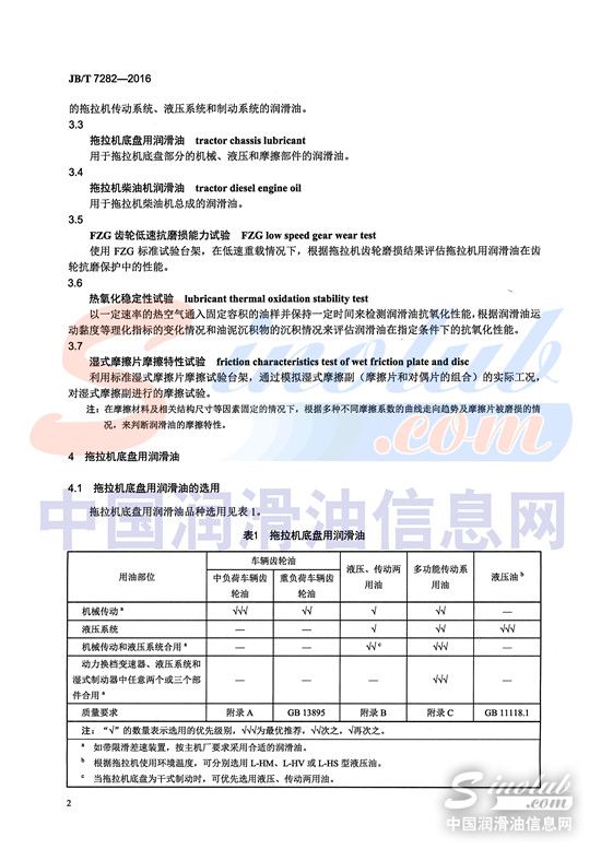 如今,拖拉机在技术发展上已经广泛采用了高新技术,在降低机身振动、发动机噪声及排放污染上进行了大幅度的提升,在可靠性、操作方便性、舒适性上等方面也有了很大的提高,外观上也更趋欣赏性。在环保呼声日高的今天,拖拉机也越来越多的向节能、环保,以及智能和机电一体化等方向发展。而随着拖拉机技术在不断的发展,对润滑油的要求也就越来越高,拖拉机用润滑油品种、规格的选用规范也亟待完善。由中国工业信息化部发布,于2016年9月1日实施的《拖拉机用润滑油品种、规格的选用》,则成为行业最新权威标准,为行业发展提供强大动力。