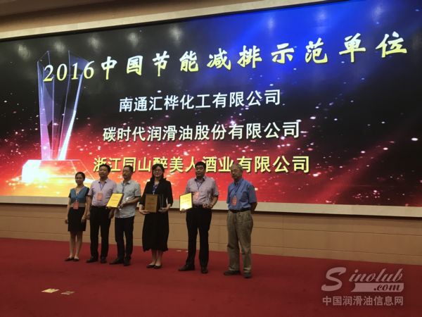 2017年7月8日,首届长江经济带生态发展高端论坛暨2016“环保中国年度人物”评选活动在中国南京举行。中节能·碳时代润滑油凭借突出的节能环保性能,践行绿色 交通、低碳出行,作为润滑油行业唯一一家入选企业,获得了 “2016中国节能减排示范单位”殊荣。