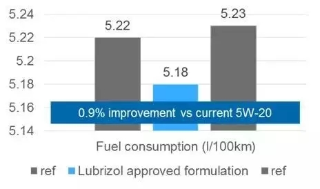 路博润全球开发的一款满足福特948B规范的5W-20发动机油,在搭载1.0 TGDI发动机的Fiesta车型上进行的NEDC循环台架试验中,显示出了对车辆0.9%的直接燃油经济性提升。