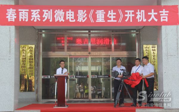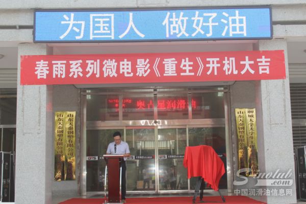 开机仪式上,聊城市春雨助学协会会长陈健飞先生感谢天泰集团多年来为全市助学活动所做的巨大贡献,祝愿公益助学微电影《重生》拍摄获得圆满成功。天泰集团全体领导班子成员、职工代表和来自聊城市春雨助学协会的各界爱心人士50余人参加了开机仪式,仪式后各界爱心人士参观了奥吉星润滑油生产厂区,并合影留念。