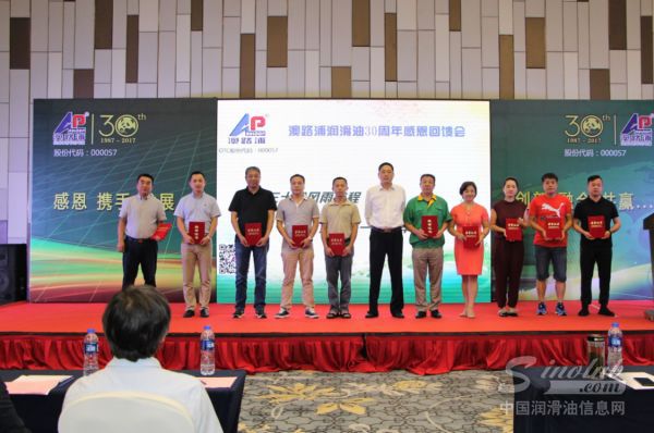 “三十载风雨兼程,感谢您一路相伴!”2017年8月13-15日,澳路浦润滑油三十周年感恩回馈会在天津隆重召开。会议以“感恩携手发展,创新融合共赢”为主题,天津市澳路浦润滑科技股份有限公司董事长李之和先生带领公司精英团队与来自全国各地的代理商、技术精英、优秀企业家和业界知名专家学者齐聚一堂,共庆澳路浦三十载华诞,共话创新发展新未来。
