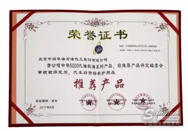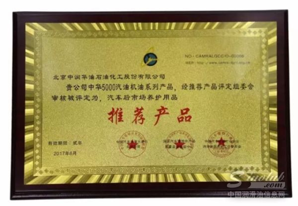 汽车后市场养护用品推荐产品这个荣誉是经中国石化石油化工科学研究院专家黄国良、李云鹏、王立华推荐,并由中国汽车维修行业协会润滑油脂养护工作委员会、中国汽车质量万里行品牌联盟、国家汽车零部件产品质量监督检验中心联合认证才能授予的。且每个推荐产品的有效期限只有2年,也就是说2年之后组委会会重新评定,选出汽车后市场养护用品的推荐产品。