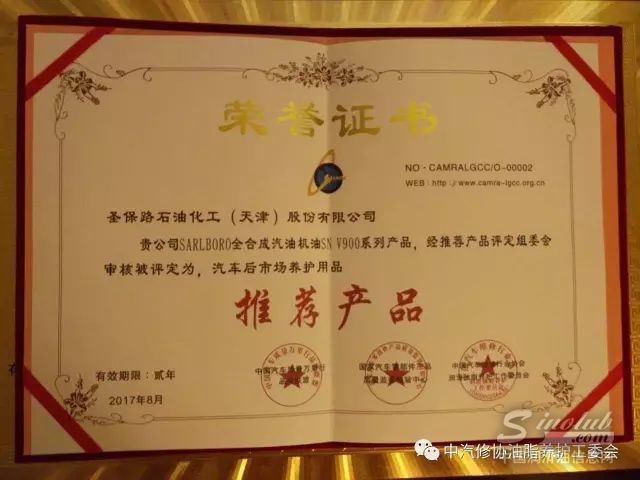 圣保路润滑历经十余年风雨历程,赢得高品质好口碑。在润滑油与汽车后市场行业发展交流峰会中荣获由中国汽车维修行业协会润滑油脂养护工作委员会、中国汽车质量万里行品牌联盟、国家汽车零部件产品质量监督检验中心三方联合认证的“汽车后市场养护用品推荐产品”荣誉称号。