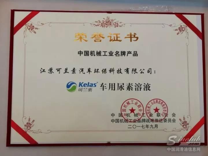 9月26日,中国机械工业协会在北京召开全国机械工业质量品牌提升大会,会上表彰了2017年机械工业质量品牌提升行动年活动中的质量诚信企业、名牌产品等优秀组织单位和个人,可兰素在本次大会上被授予“中国机械工业名牌产品”荣誉称号。