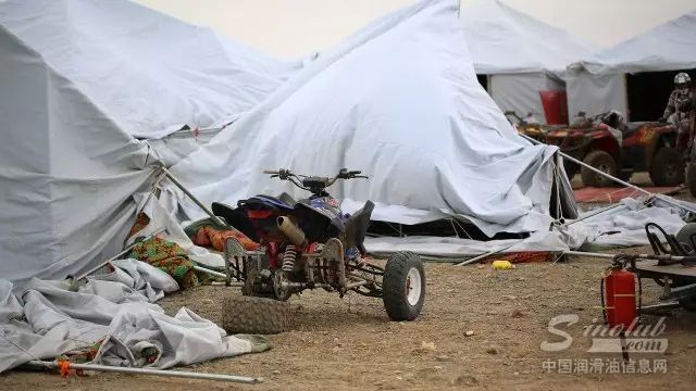 24日比赛之日,新疆突遇寒潮,一夜之间狂风肆虐,致使康普顿润滑油车队的帐篷坍塌,造成了较大的损失,物资的丢失,装备的不堪,更增加了比赛的难度。到了赛场一看,所有人都震惊了。赛车被压在帐篷底下,装备飞满天。选手们对比赛有了一丝担心,突发状况不但影响比赛发挥,甚至战车有可能在赛场抛锚,增加危险。