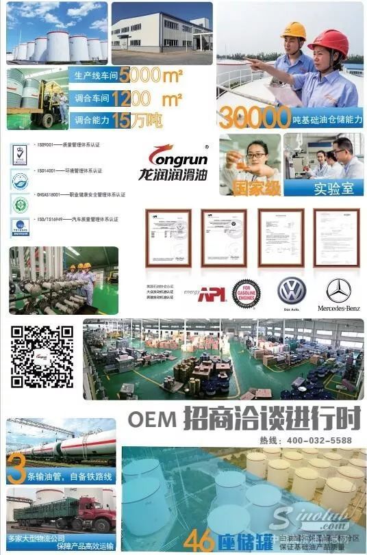 已通过ISO9001质量管理体系认证、ISO14001环境管理体系认证、OHSAS18001职业健康安全管理体系认证、汽车质量管理体系ISO/TS16949认证、美国API认证、Mercedes-Benz奔驰汽车发动机油认证(longrun SAE 5w-40)及volkswagen德国大众汽车发动机油认证(longrun SAE 5w-40)。