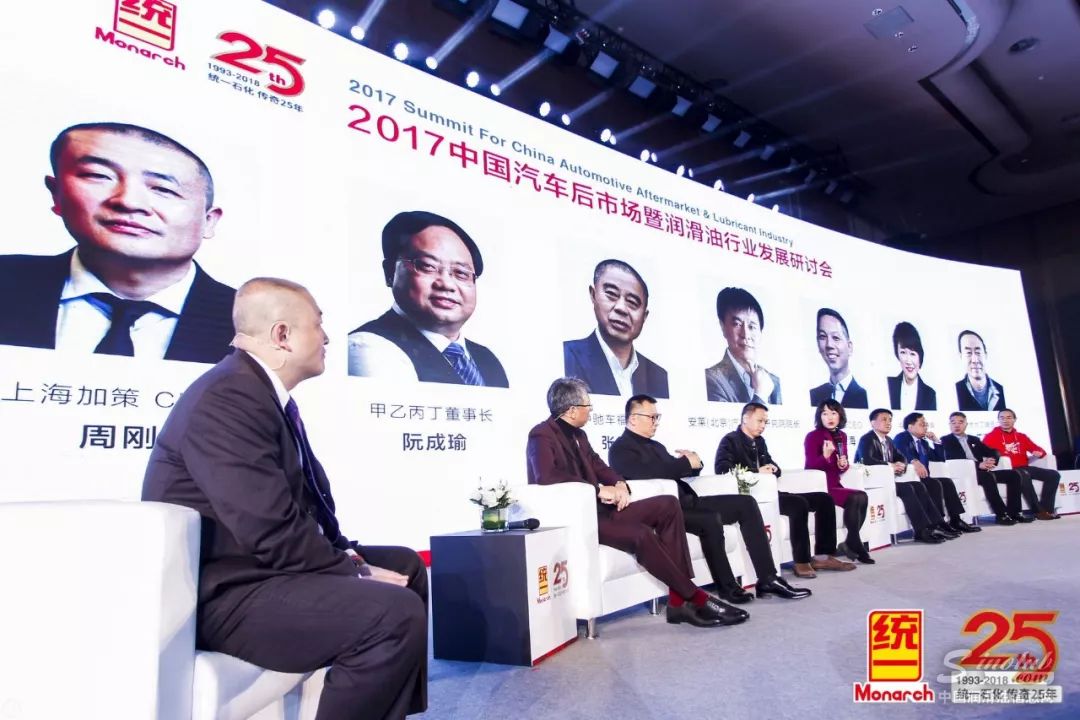 上午大会伊始,由统一石化CEO李嘉先生、轮胎界大佬金之钦先生、甲乙丙丁网CEO阮成瑜先生、中驰车福董事长张后启先生、安莱(北京)汽车技术研究院院长阚有波老师、快准车服CEO蒋仁海先生、华胜集团副总裁周因因女士、内蒙古鄂尔多斯大丁商贸有限责任公司总经理丁富存先生组成的大咖论坛在特邀主持人周刚先生的引导下,拉开了本次研讨会的序幕。