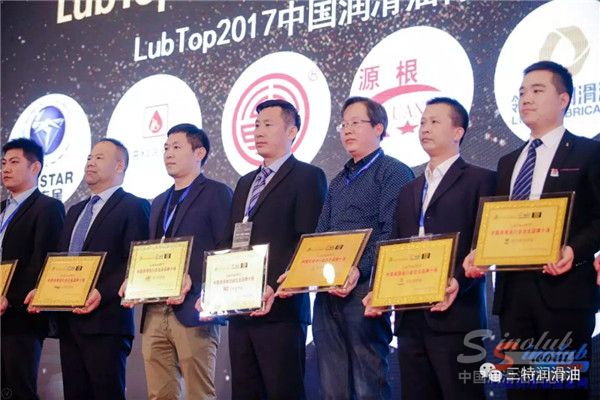 王连竹总经理(图中间者)代表三特润滑油获颁“LubTop2017行业自主品牌十强”